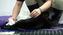 En pleine toilette, une jeune loutre s'aperçoit soudain qu'on l'observe. Sa réaction est hilarante.