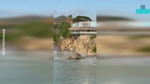 Couple Knocked Down by Huge Wave
