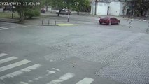 Brutal accidente en una esquina de Tucumán entre un policía motorizado y un motocarro