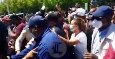 Empujones y trompadas en trifulca entre la policía y manifestantes en terminal de autobuses