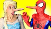 Spiderman is a LIAR! Frozen Elsa gets a long NOSE w/ Pink Fairy, Hulk Superheroes in real movie