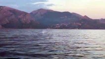Una balena nel mare di Maratea al tramonto