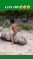 Boy ride a pig funny video