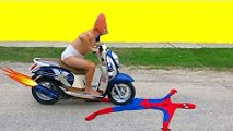 Amusing baby & Spiderman Motorbike Accident! w Joker Princess Rapunzel Snow Whit