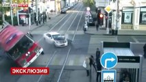 Car Crashes into Fire Truck Rolls over