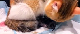 Cat Giving Birth to 5 kittens with complete different color