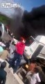 Horrible accident with people burning inside the car