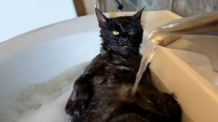 Cat Who Can’t Groom Himself Falls Asleep During Bath Time