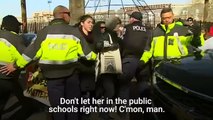 Betsy DeVos is blocked by protesters from entering a school