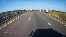 Une voiture se fait prendre en sandwich par 2 camions sur l’autoroute