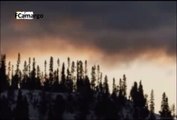 Lobos caçando uapitis na neve