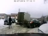 hurried truck driver flips a tractor