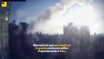 Moment en què un míssil rus impacta contra un edifici d'apartaments a Kíev