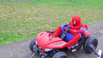SUPERMAN vs SPIDERMAN POWER WHEELS RACE GIANT SURPRISE TOYS KIDS opening PLAYTIME AT THE PARK batman-b37