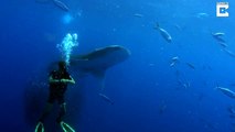 Fish Surround Diver In Ball To Protect Him From Huge Shark