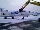 Pour son dernier jour, il prend sa pelleteuse et détruit un jet à 5 000 000 de $