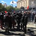 Une voiture de police brûlée par des manifestants