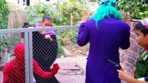 Police baby quod Spiderman, Frozen Elsa, Joker, Witch escape Fun Superheroes