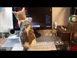 【癒し】 眠いのにパソコンの音に反応してしまう子猫