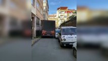 Sokaktan geçemeyen kamyon park halindeki araçlara çarparak yoluna devam etti!