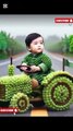 Cute baby drive grapes tractor