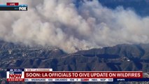 NEW AERIALS_ Firefighting helicopters flyover Palisades fire nearing Brentwood