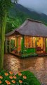 Tropical Mountain Resort, Thatched Hut, Rainy Thunderstorm Ambience, Nature, Flowers.