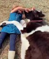 Baby cow comforted by singing