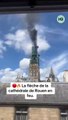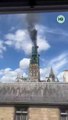 La flèche de la cathédrale de Rouen en feu.