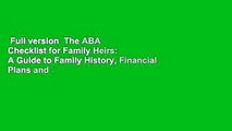 Full version The ABA Checklist for Family Heirs: A Guide to Family History, Financial Plans and