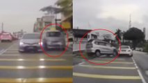 罗里视线死角插队轿车被拖行