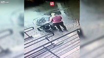 Pickpocketer gets kicked off a motorcycle by the victim and pinned to the ground
