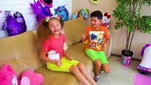 Sasha y Max juegan desafío de juguete comestible kids