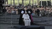 The Pope prays at Saint Maximilian Kolbe's cell