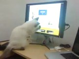 Gatito jugando con la PC- cat video game