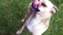 Chug Dog Bridie legging it with Cocker Spaniel Indy.