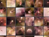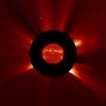 Images capturées par le satellite d'observation solaire Stereo B. Le Soleil est hors champ à gauche. Le gros point lumineux à droite, c'est nous !, la Terre. Au centre la comète PanSTARRS se déplace au premier plan, dispersant dans son sillage de grandes quantités de glaces et de poussières. Le noyau de la comète ne mesure qu'1 km de diamètre !