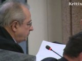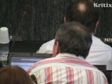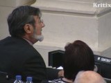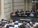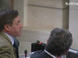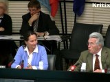 La présidente-candidate Ségolène Royal reçoit un gros bouquet de roses des mains du vice-président Bernard Grasset. Extrait de la séance publique du conseil régional Poitou-Charentes du 22 février 2010.
