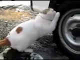 Gatto innamorato di un pneumatico