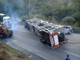 Alza troppo il rimorchio e il camion si ribalta