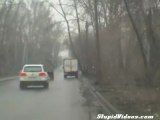 La strada è troppo sottile e il camion si ribalta