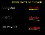 bonjour, merci et au revoir en chinois