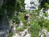05:34Là, plongée à gauche, le sentier dévale une première cheminée, avec une grotte à son pied,