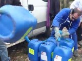 3 Traçages (injection d'un colorant dans un massif calcaire) sont effectués début 2011. Ils permettront de déterminer l'origine des eaux des sources avoisinantes. Pour détecter la trace des 3 traceurs, il nous faut récupérer des échantillons d'eau dans les forages et sources surveillés, puis les analysés au spectrofluorimètre. C'est ce que nous appelons la tournée, elle va durer 1 an.....