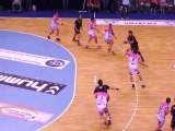 Magnifique Kung fu avec tir dans le dos réalisé par le joueur de Cesson Sylvain Hochet sur une passe de Jérémy Suty.