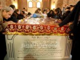 Fidèles prennent la bénédiction du siège de Saint Marc ou était assis le Pape Shenouda III