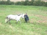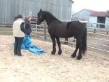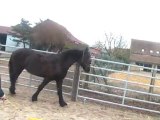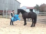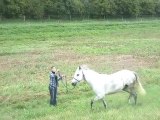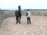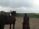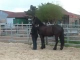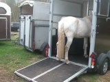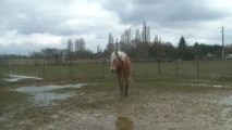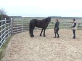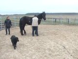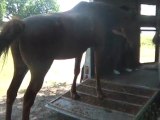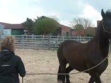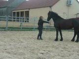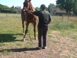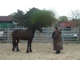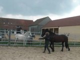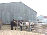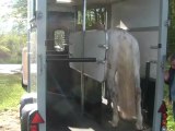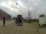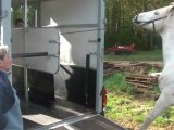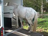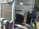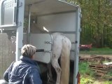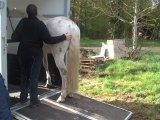 Sur le chemin, du pré au van, Tarugo n'est pas motivé et bouscule Coco. Je le prends et tout va bien, il montera très vite. Je mets la barre, il est sage, on décide de faire la dernière étape ! le "voyage".