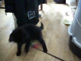 Mimy et Moog jouent avec le plumeau