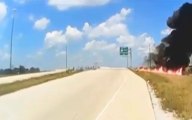 Truck loses control, explodes on US highway