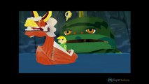 Carte n°4 : Retournez sur l’île de l’Aurore puis allez au sommet de celle-ci. Lancez-vous ensuite vers l’est en planant avec votre feuille mojo. Vous devriez rattraper une plateforme contenant une énorme pierre. Jetez-la puis entrez dans le trou. Vous vous retrouverez dans une grotte. Vous avancerez d’étage en étage dans cette grotte en devant tuer trente vagues d’ennemis. A la fin de ces vagues se trouvera un coffre. Ouvrez-le pour récupérer une nouvelle carte .